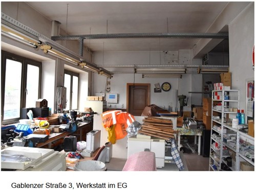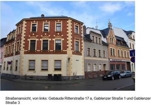 Bei dem Objekt handelt es sich um 3 teilsanierte Gebäude, die sich auf zwei Grundstücken Flst. 651 (110 qm, Gablenzer Str. 1) und 651/a (500qm, Gablenzer Str. 3, Ritterstr. 17a) befinden. Die Gebäude wurden bisher als eine große Einheit genutzt. Zwischen den Gebäuden gibt es Durchgänge. Die Erdgeschosse der Gebäude Ritterstr. 17a und Gablenzer Str. 1 bilden eine große Wohnung. Das Gebäude Ritterstr. 17a hat keinen straßenseitigen Zugang. Dieser erfolgt über die Gabl. Str. 3 und den Hinterhof. Das Gebäude Ritterstr. 17a umfasst: EG Wohnung, obere Geschosse Rohbau bzw. nicht modernisiert. Das Gebäude Gablenzer Str. 3 umfasst: EG Werkstatt, OG sanierte Büros, DG unausgebaut. Auf dem Grundstück befinden sich noch Schuppen/ Garagen. Das Gebäude Gablenzer Str. 1 umfasst: EG teilw. Wohnraum, OG und DG teilsanierte Räume. Kellerräume vorhanden. Das Objekt steht seit 2024 leer, ein Großteil der Flächen vermutlich schon länger. Parkmöglichkeiten sind nur einseitig an der Gablenzer Straße vorhanden. Beheizung über Gasheizungsanlage, teilweise Festbrennstofföfen vorhanden, teilweise sind Flächen derzeit nicht beheizbar. Weitere Details können gern angefordert werden.