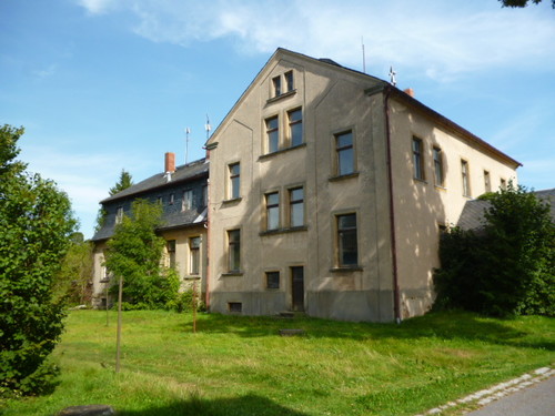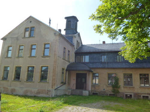 leerstehende ehemalige Schule aus dem Jahre 1879 (Einstellung des Schulbetriebes 1970) mit Erweiterungsbau aus dem Jahre 1926, zweigeschossiges Gebäude mit 4 Wohneinheiten im Obergeschoss (303 m²) und einer Gewerbeeinheit (50 m²), Ofenheizung, Dachgeschoss ausgebaut, Walmdach, Holzfenster, Holzinnen- und -außentüren, Sanitär einfacher Standard, Erweiterungsanbau vollständig unterkellert, Altbau teilweise unterkellert; Kulturdenkmal (ortshistorisch relevant); aufstehende Garagen im Dritteigentum - zwei Garagenpachtverträge; Bauzustand insgesamt: verfallen und stark sanierungsbedürftig; Medien anliegend, entsprechen jedoch nicht den derzeitigen Erfordernissen; keine Eintragungen in Abteilung II und III im Grundbuch; Pachtvertrag über Grünfläche; im Randbereich könnte sich teilweise die öffentlich gewidmete Gemeindestraße „Zur alten Schule“ befinden