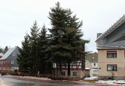 Das vergleichsweise kleine Grundstück ist mit einem geringfügig unterkellerten, zweigeschossigen Wohnhaus mit ausgebautem Dachgeschoss bebaut. Das insgesamt verputzte und straßenseitig mit Fachwerk verkleidete Wohnhaus mit Raumhöhen unter 2 m und ungünstiger Raumstruktur ist unbewohnt und unberäumt bzw. vermüllt und befindet sich in schlechtem baulichen Zustand; mangelnde Wärmedämmung, Feuchtigkeitsschäden, seit Jahrzehnten keine erkennbaren Instandsetzungs- bzw. Modernisierungsmaßnahmen. Das Grundstück ist mit einfachem Latten-, Jägerzaun bzw. Hecke umgrenz; zahlreiche Ablagerungen, Müll vorhanden; im Vorgarten mehrere große Fichten bzw. Kiefern.